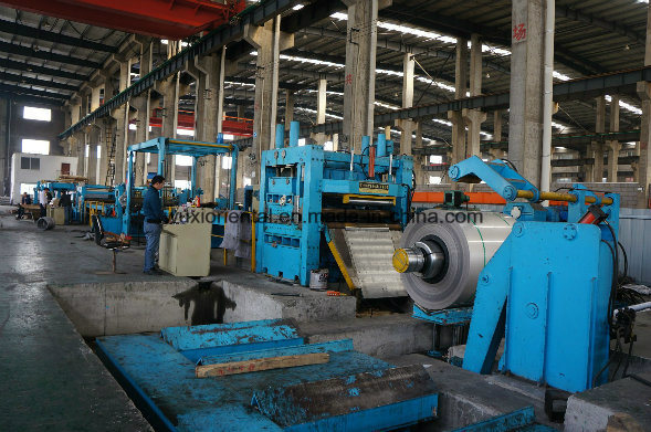 Standard devices: Loading car, uncoiler, feeding machine, pre-leveling machine, slitting shearing machine (storage bin), strip edge recoiler, dampng device, material separation device recoiler, unloading car, hydraulic system, and electro-pneumatic system. The electo-pneumatic system adopts import PLC controller and Touch- sensitive Screen to control all the functions. The main motor of slitting shearing machine adopts DC motor from British Eurotherm Corp, which has features of high automation, good quality of straightening, high precision of shearing and cutting, reliable and stable function, and easy operation and maintenance etc.