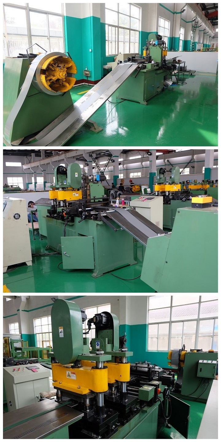 Function:the conveyor is driven by a AC1.5kw motor to drive the steel core strip from the punching section, and the cutting section, and shears are cut off and then transferred to the transfer device of the material receiving mechanism.