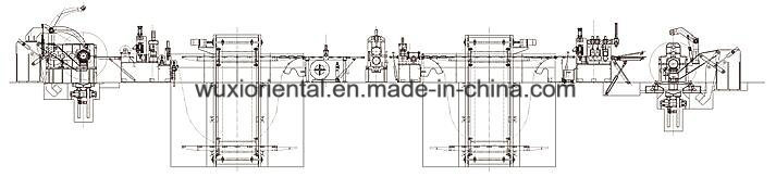 Standard devices: Loading car, uncoiler, feeding machine, pre-leveling machine, slitting shearing machine (storage bin), strip edge recoiler, dampng device, material separation device recoiler, unloading car, hydraulic system, and electro-pneumatic system. The electo-pneumatic system adopts import PLC controller and Touch- sensitive Screen to control all the functions. The main motor of slitting shearing machine adopts DC motor from British Eurotherm Corp, which has features of high automation, good quality of straightening, high precision of shearing and cutting, reliable and stable function, and easy operation and maintenance etc.